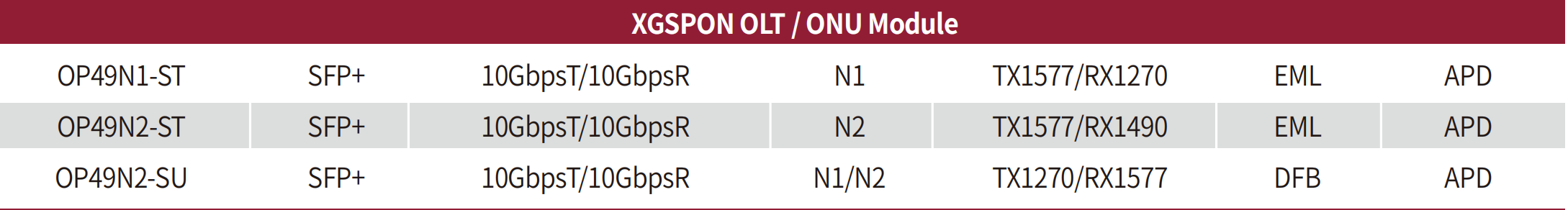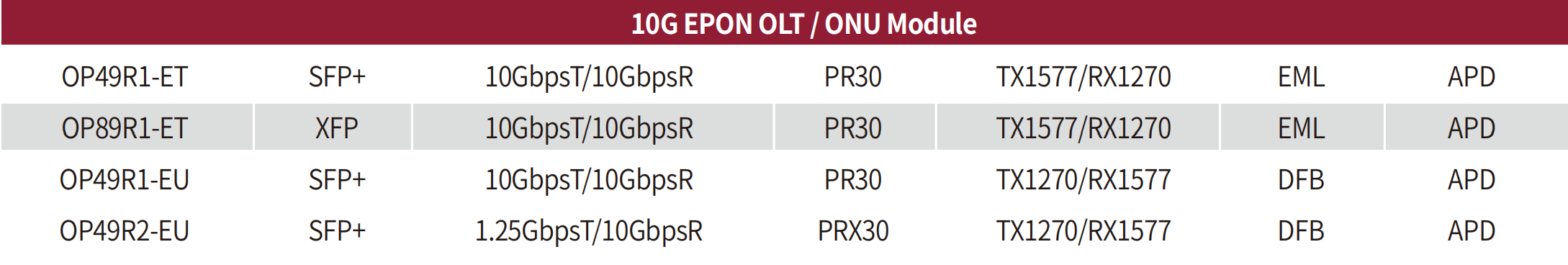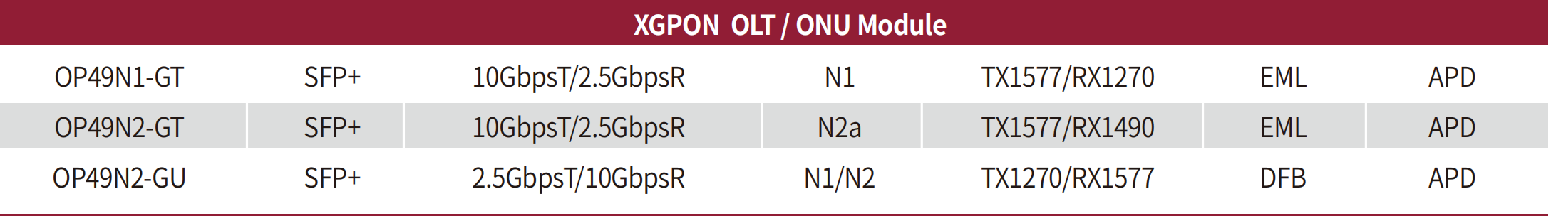 • EPON/GPON/10G EPON/XGPON/XGSPON/Combo PON select